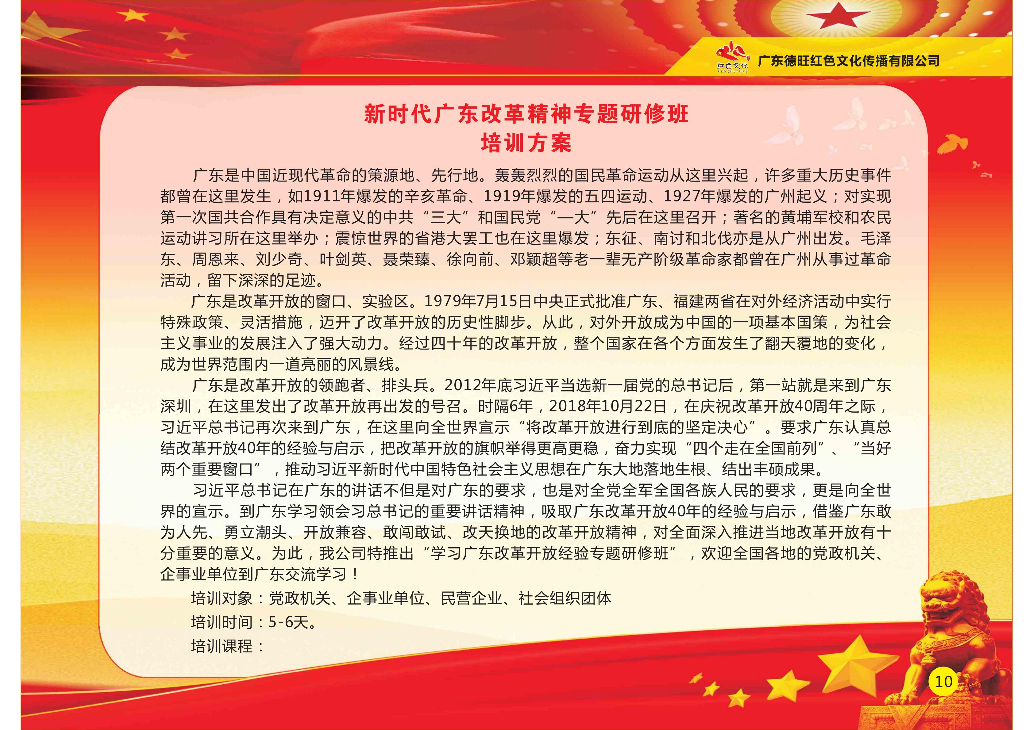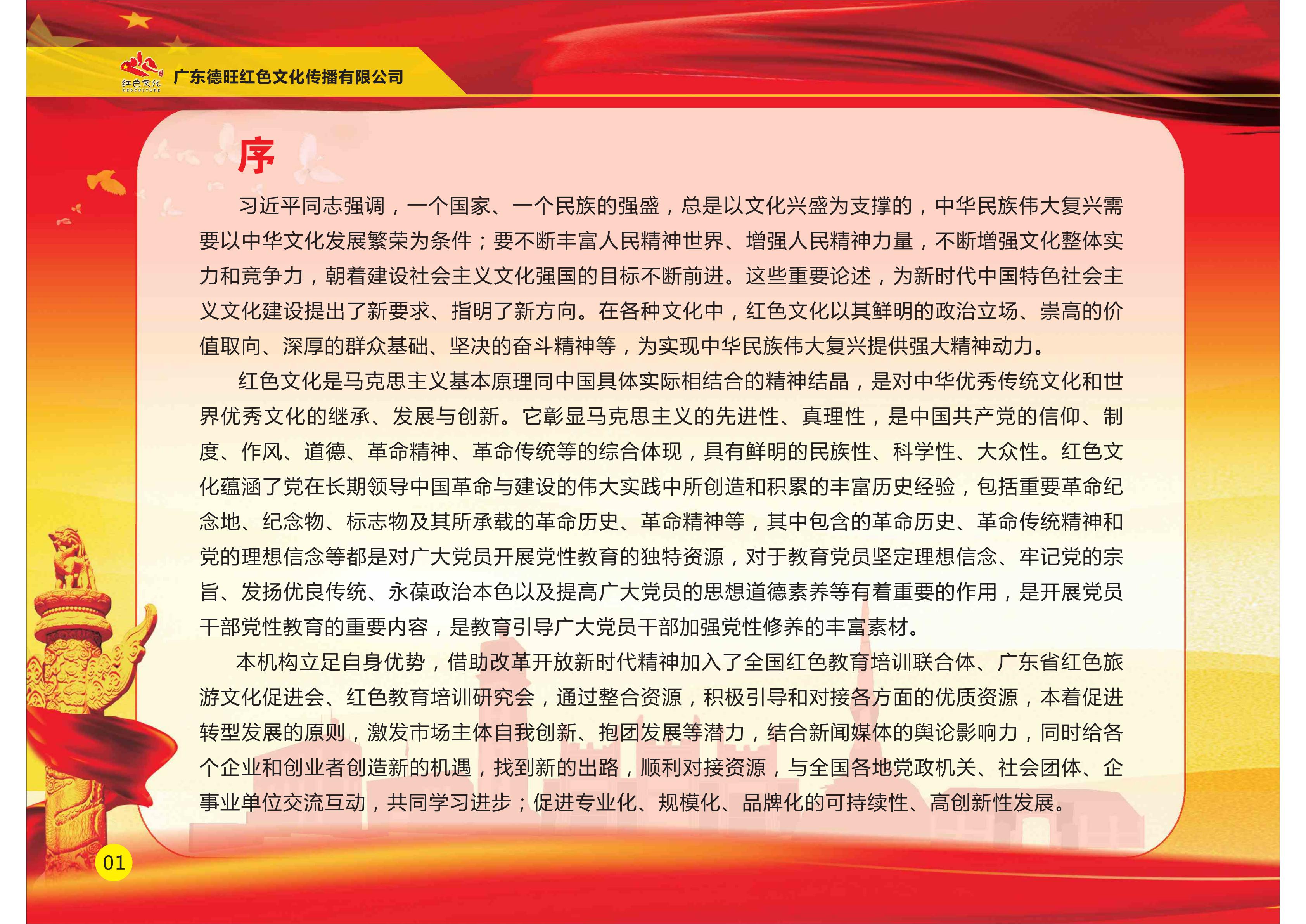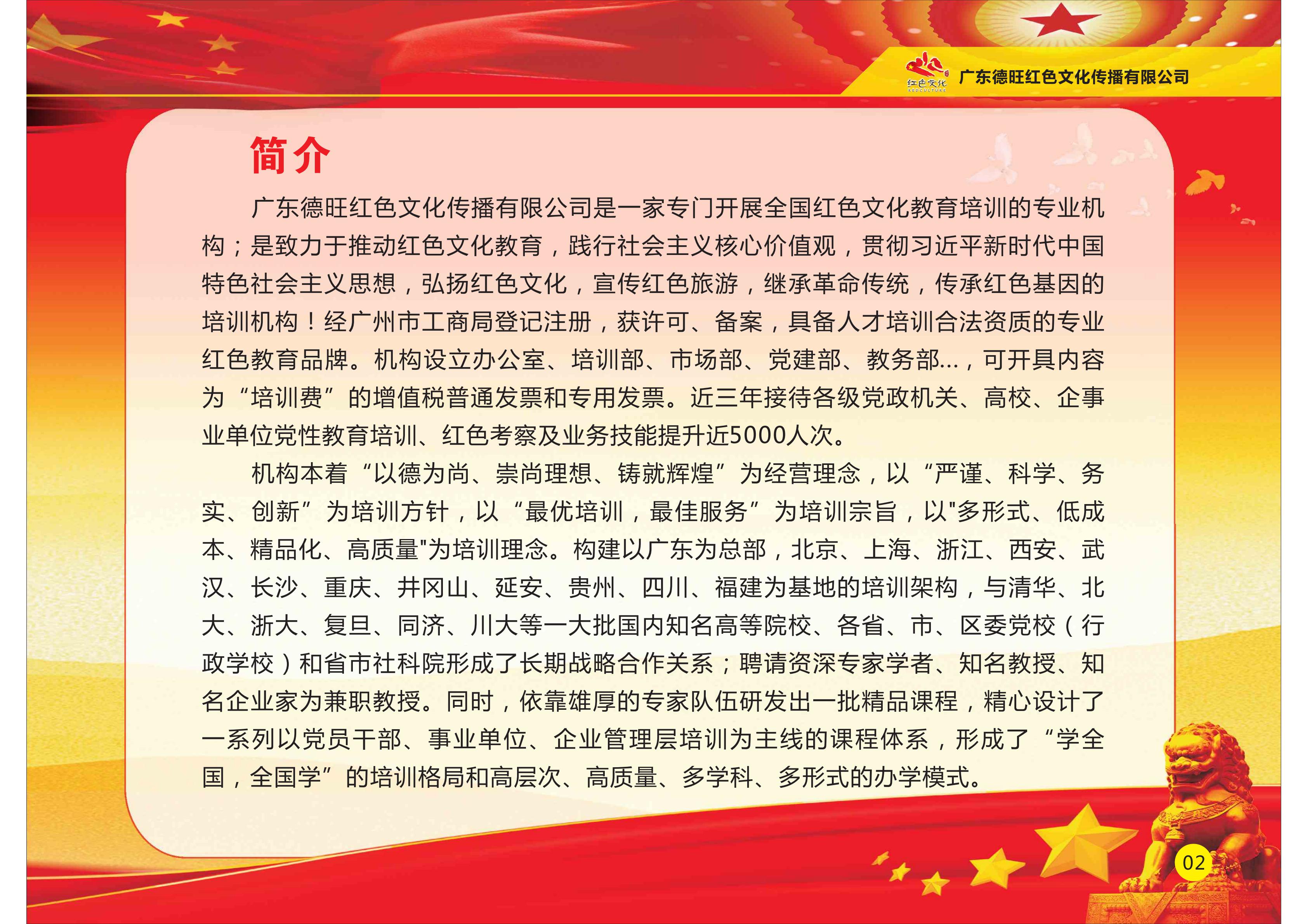 广东德旺红色文化传播有限公司是一家专门开展全国红色文化教育培训的专业机构。